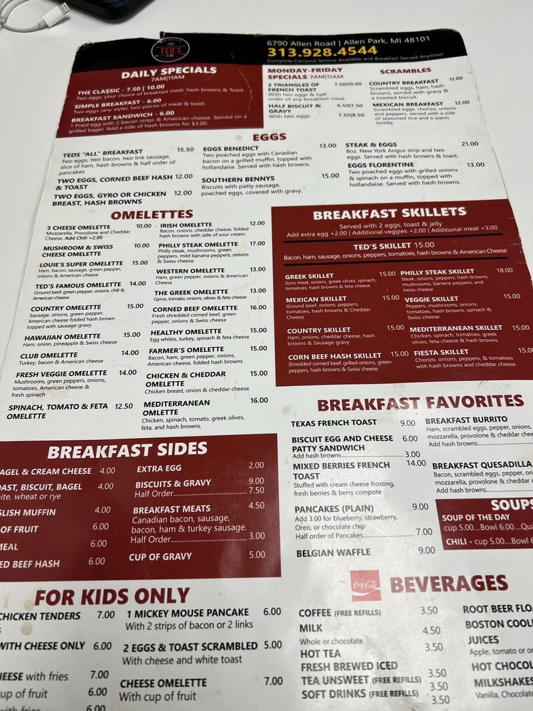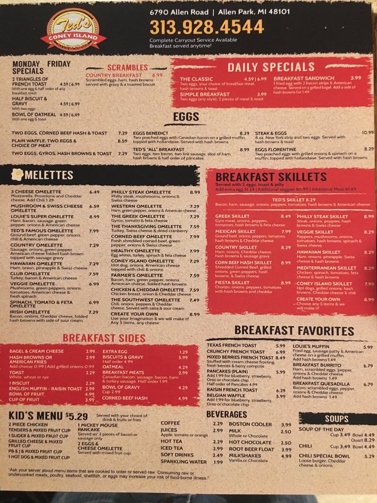 Located at 6790 Allen Rd, Allen Park, MI, Ted’s Coney Island invites diners into a cozy, old-school diner setting, where the aroma of home-cooked meals fills the air. The menu boasts an eclectic mix of hearty breakfast options, delicious burgers, and fresh salads, ensuring there's something for everyone.